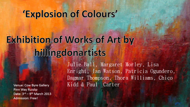 'Explosion of Colours' An Exhibition of paintings by Patricia Ogundero and nine hillingdonartists members at the Cow Byre Gallery in Ruislip