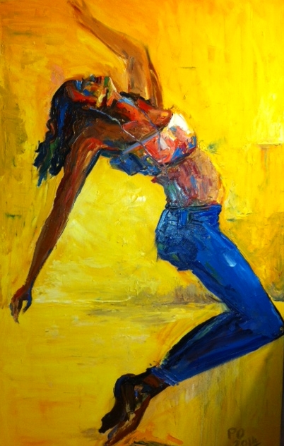 “Dancing in the sun has given me the opportunity to explore the topic; the emotions, sounds, music, love, joy, ecstasy and reflections, all inspired by shapes and forms from diverse cultures and especially of African art motifs and abstract expressionism of a simple yet complex statement”.