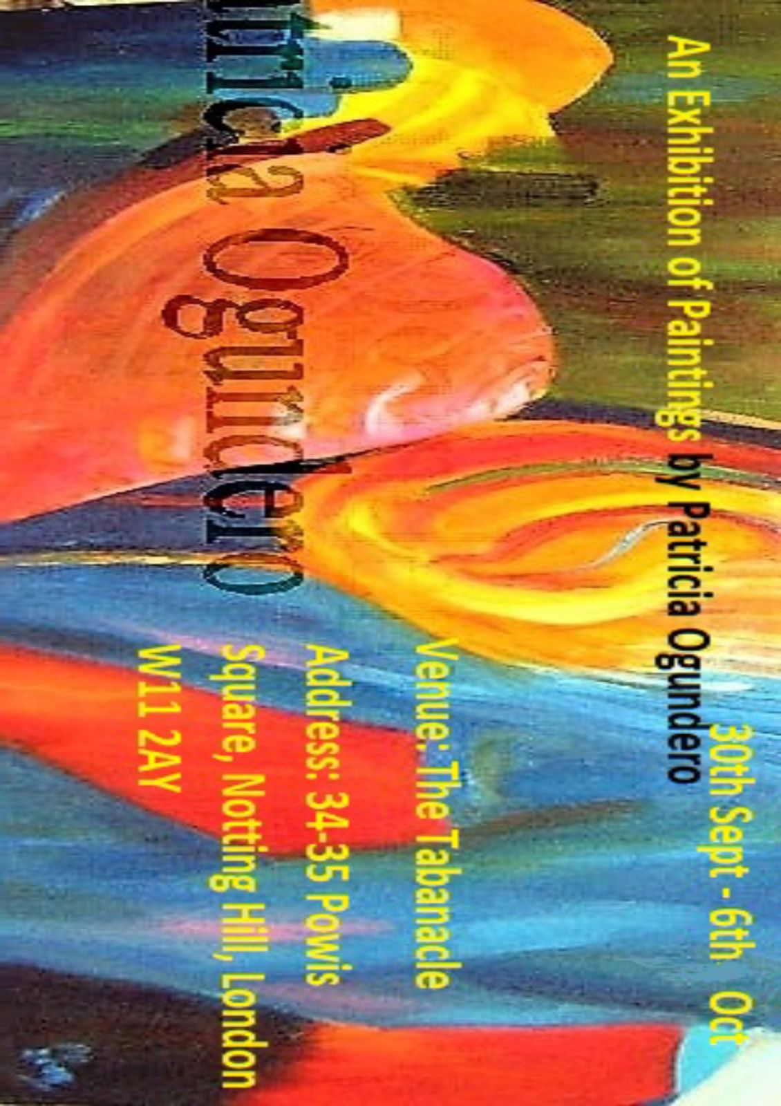 Patricia is at The Tabernacle W11 London, from Monday 30th September to Sunday 6th October, exhibiting her paintings in their colours, abstractions and vibrancy!