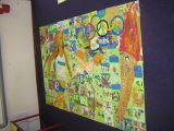 Patricia Ogundero worked with pupils in Cranford Park Primary school in the summer months of 2013 leading the children in making their paintings inspired by various topics been learnt in individual schools, including; Multi-culture Art, exploring ethnic background of pupils, nature, birds and Animals ...morePyramid Painting by children in Heathrow Primary School Hillingdon