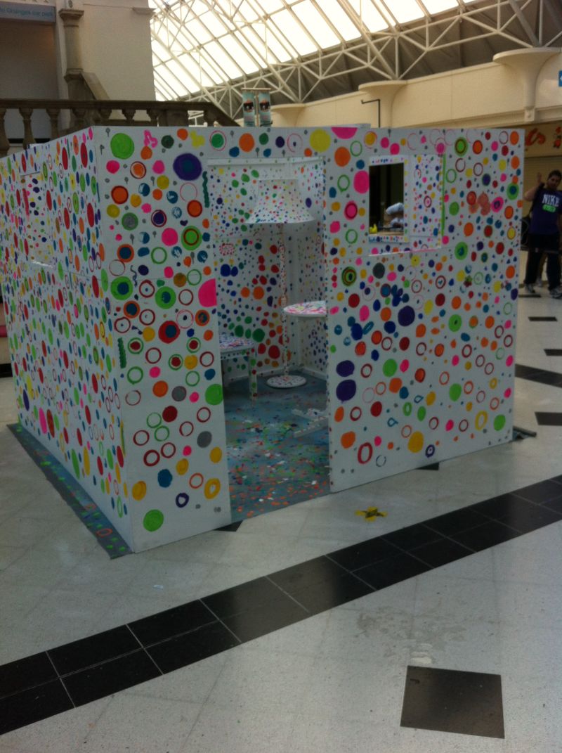 Patricia, prepared a room space, painted it all white including all furnishings and invited the public to paint their different types of dots / circles, about 87 people participated in making this exciting installation that was on display at the Mall for two weeks from 26th May - 9th June 2013